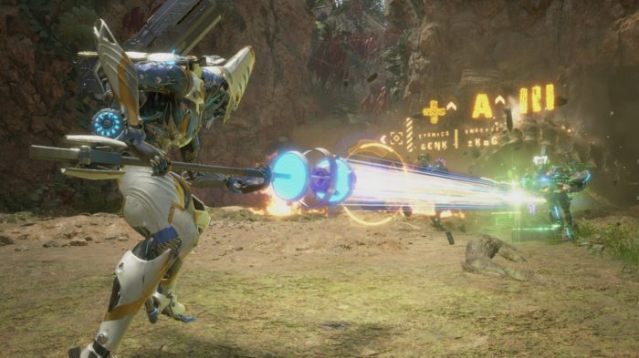 Während die Standard-Variante dieses Anzugs die vorderste Front bildet, nutzt die Alpha-Variante dafür seinen Schild. Das heißt ihr könnt dieses platzieren und damit Feinde anlocken, während ihr eure Position ändert. Eure Strategie dreht sich hier also eher darum, wo ihr euren Schild platziert.