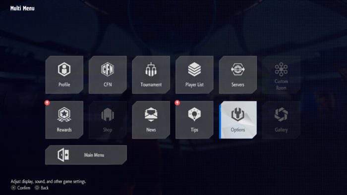 Drückt Option/Start/Tab(Tastatur), um das Multimenü zu öffnen. Hier könnt ihr unter „Optionen“ die Grundeinstellungen des Spiels anpassen, unter „CFN“ (Capcom Fighters Network) Freunde verwalten und Replays spielen und unter „Tipps“ Erklärungen zum Spielmodus und Hinweise zur Bedienung abrufen.